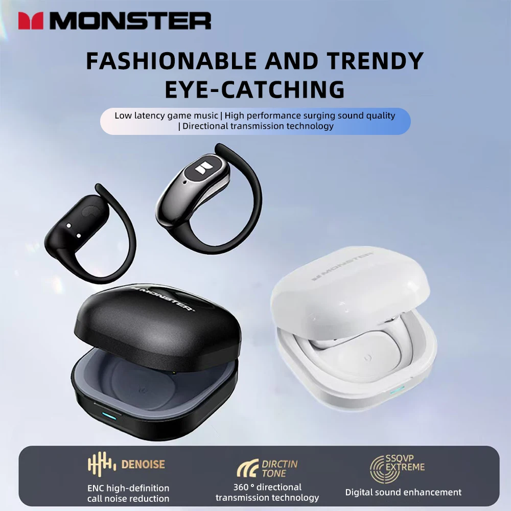 Monster AIRSTAR M300 OWS Sports Gaming Earphones Wireless Bluetooth 6.0 Ear Clip Earbuds HD Calls Noise Cancelling Headphones
