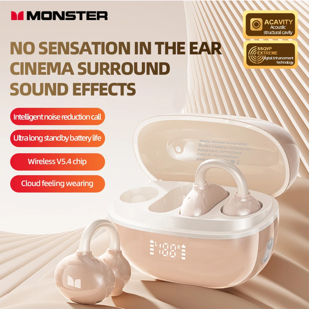 Monster AIRSTAR M100 Gaming Ear Clip Earbuds Wireless Bluetooth 5.4 HeadphonesHiFi Stereo HD Call Sports Earphones for xiaomi