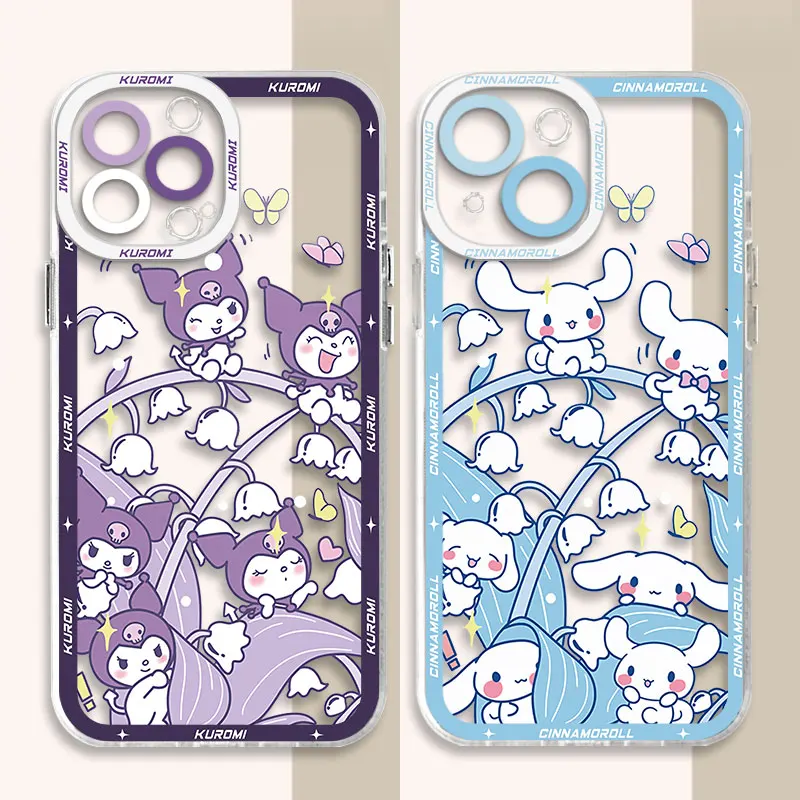 Kawaii Sanrio Cinnamoroll Phone Case for iPhone 14 15 Plus SE XS 13 Pro Max 11 Pro X XR 12 Mini Clear Silicone Cover Cases Capa