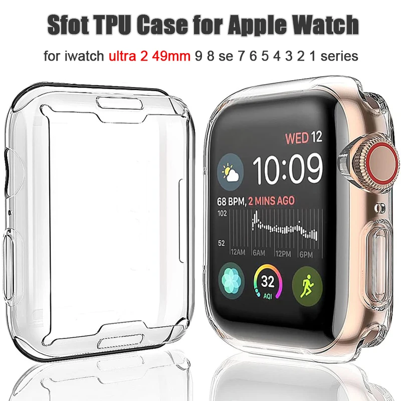 Soft TPU Screen Protector for Apple Watch ultra 2 49mm 45mm 41mm 44mm 40mm TPU Bumper 42mm 38mm Series 9 8 7 SE 6 5 4 3 Ultra2