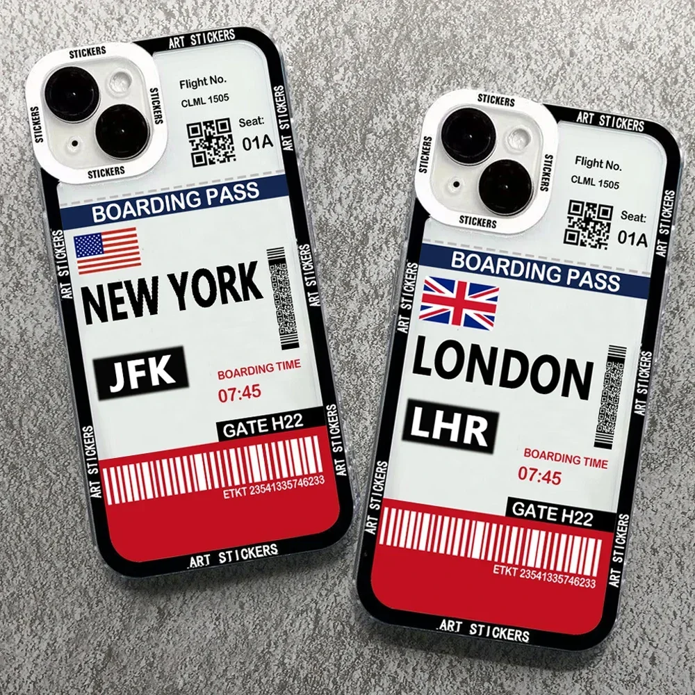 World City Travel Ticket New York Paris Label Phone Case For iPhone 16 15 14 13 12 11 Pro Max Mini XS X XR 7 8 Plus Soft Cover