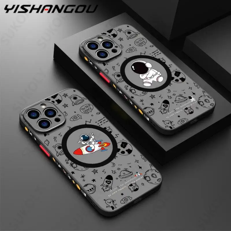 Magnetic Space Astronaut Case For iPhone 15 Pro Max 14 Pro 13 12 11 16 16e 17 Air Back Cover Coque For Magsafe Wireless Charge