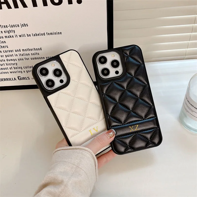 Personalise Gold Silver Letters Leather PU Hard Case For Iphone 14 13 17 Pro max 12 16 15 17 pro 17 air Luxury Solid color Cover