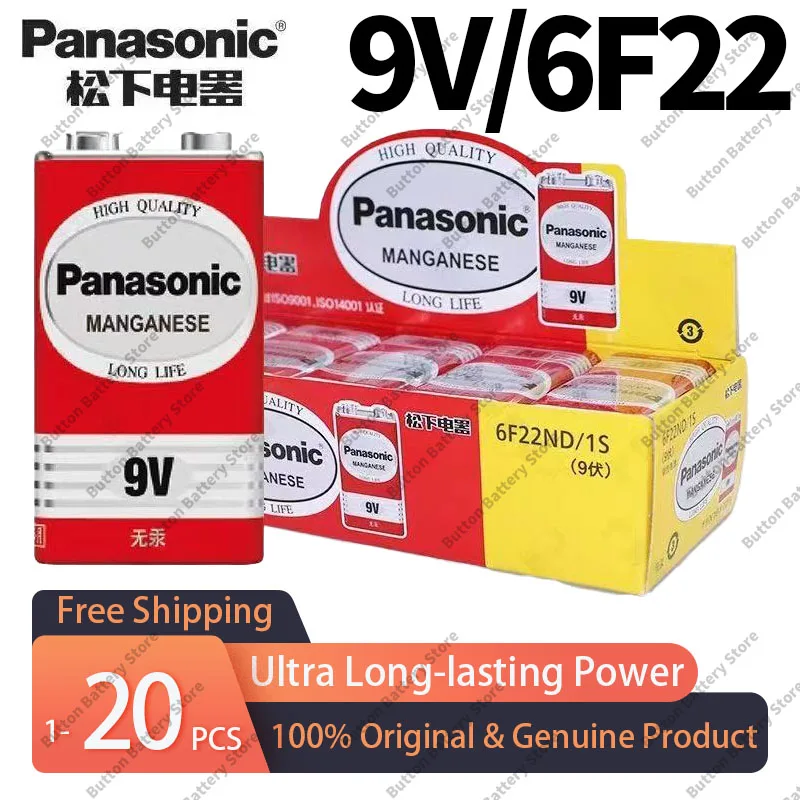 Panasonic 9V 6F22 Alkaline Batteries-Mercury Free, Long Life for Alarm, Wireless Microphone, Smoke Detector, High Performance
