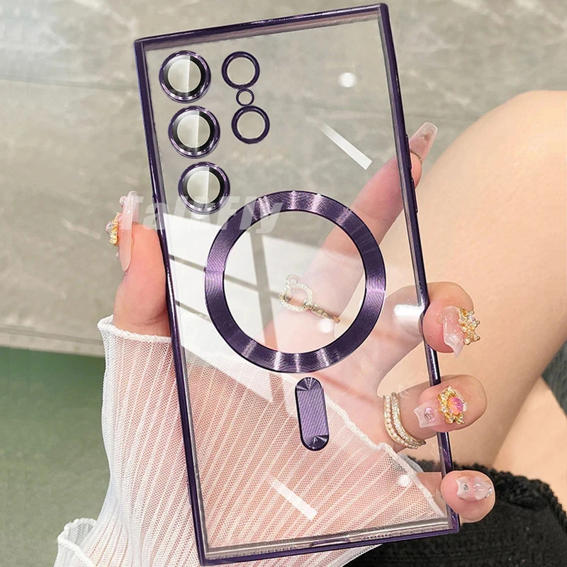 Plating Transparent For Magsafe For Samsung Galaxy S21 S22 S23 S24 Ultra Plus Case magnetic Wireless charging Silicone Cover
