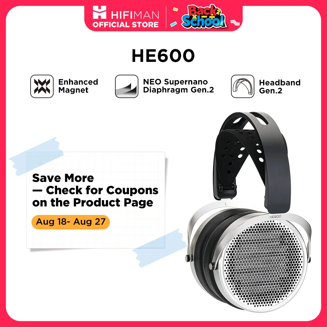HIFIMAN HE600 Open-Back Over-Ear Full-Size Headphones with Enhanced Magnet