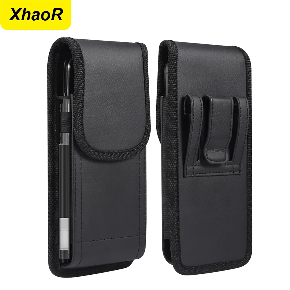 Universal Leather Mobile Phone Waist Bag For iPhone 15 14 13 Pro Max Samsung Xiaomi Vertical Cell Phone Belt Clip Holster Pouch