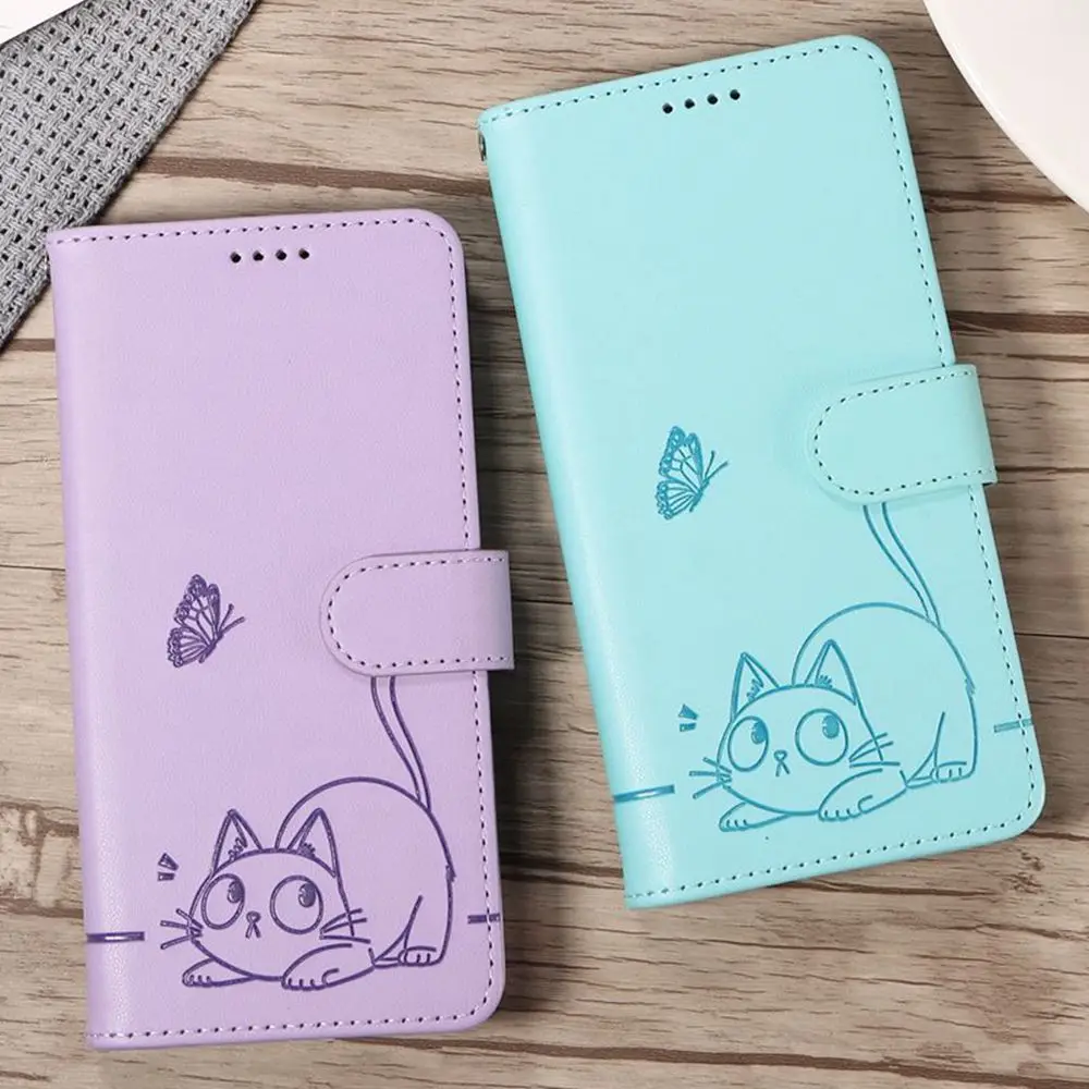 Cute Cat Phone Case for Motorola G05 G15 G35 G55 G75 G85 G45 G34 G84 G54 G14 G73 G13 G23 E22 Edge 50 40 Cases Leather Flip Cover