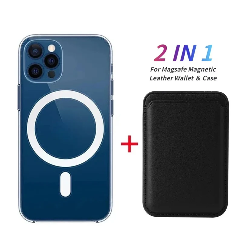 For Magsafe Leather Card Wallet Cover For iPhone 17 Pro Max 16E 16 15 14 Plus 13 12 Mini Magsafe Clear Case Transparent Bumper