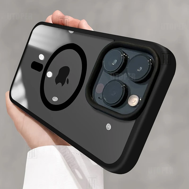 High Quality Anti-fall Acrylic Black Case for iPhone 17 Air 16 15 14 13 12 11 Pro Max Plus Magnetic Magsafe Clear Hard Cover  Read more