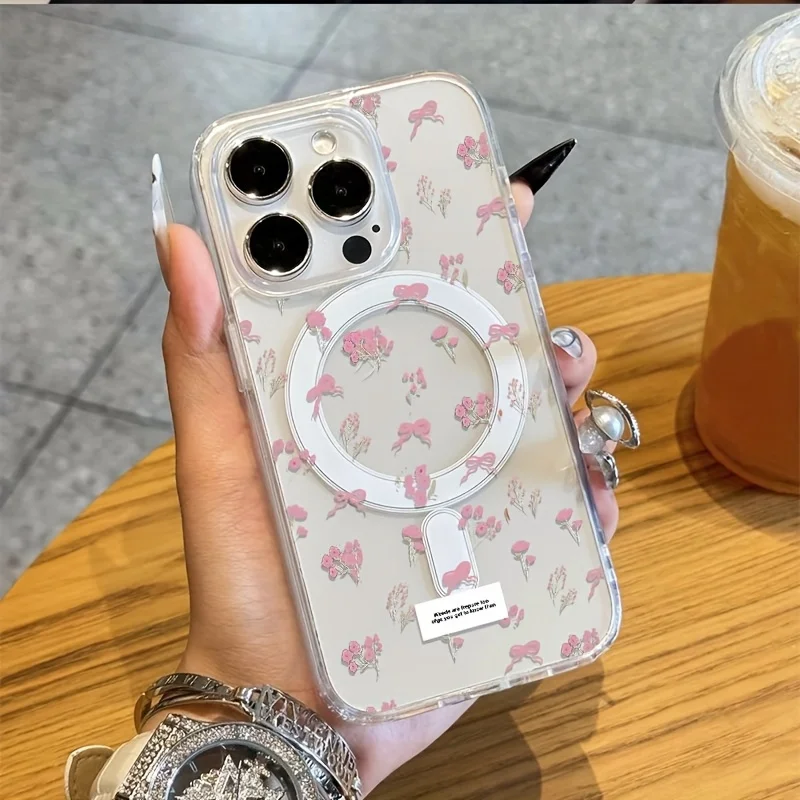 Pink Flowers Acrylic Phone Case For iPhone 16 15 14 13 12 11 Pro Max Plus Magsafe Magnetic Wireless Clear Cover  Read more
