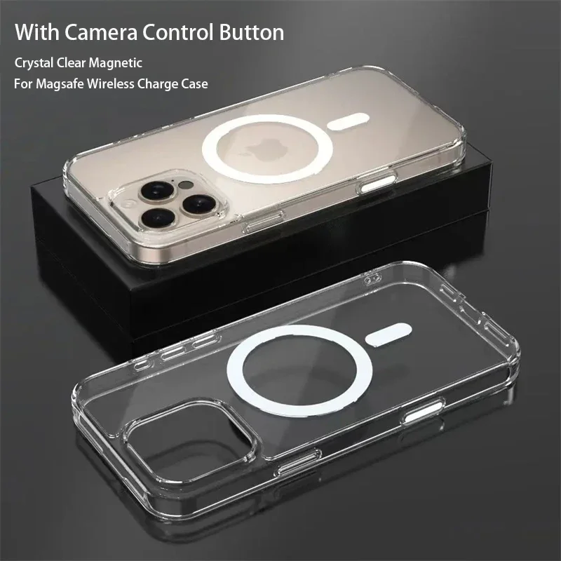 With Camera Control Button Clear Acrylic For Magsafe Case For iPhone 16 Pro Max 16Plus Magnetic Wireless Charge Shockproof Cover