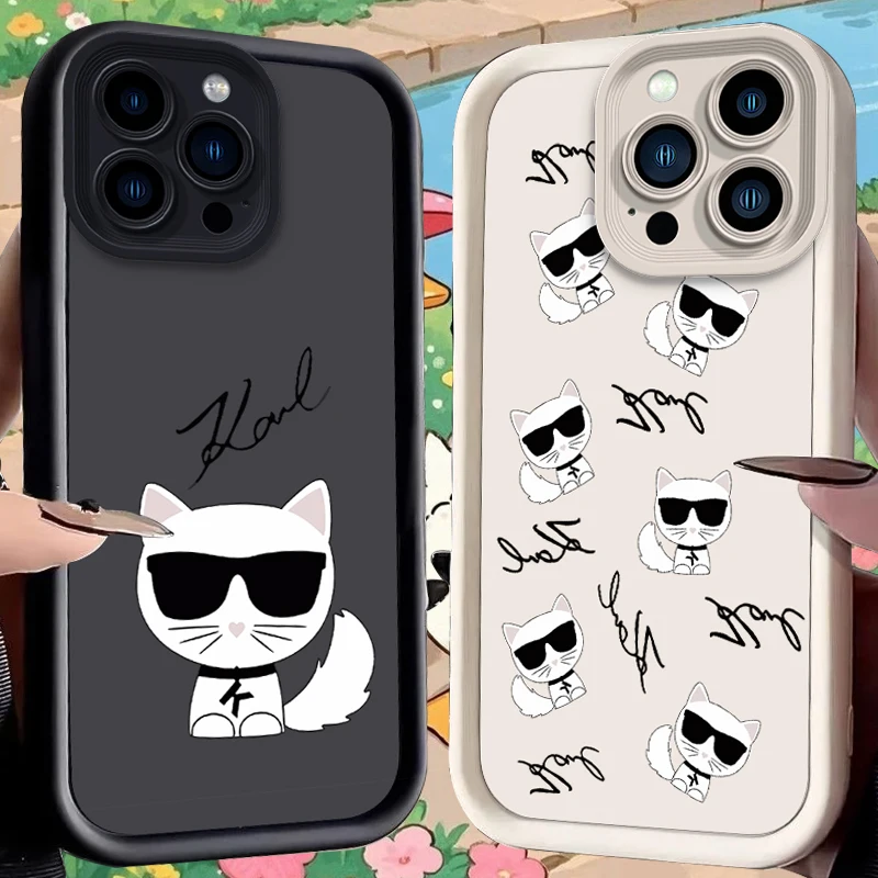 Little White Cat Case for iPhone 16 E 15 14 13 12 Mini 11 Pro Max XS X 8 7 Plus SE Liquid Soft Silicone Shockproof Back Cover