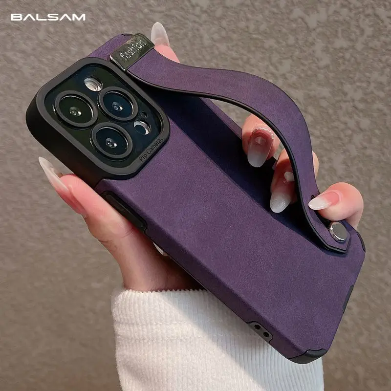 Luxury Suede Leather Wrist Strap Holder Stand Case For iPhone 16 11 12 13 14 15 Pro Max XR XS X 8 7 Plus Matte PU Silicone Cover