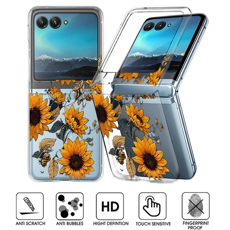 Sunflowers Pattern Clear Phone Case For Motorola Razr 50 40 Ultra Razr40 Razr50 Shockproof Bumper Transparent Folding Hard Cover