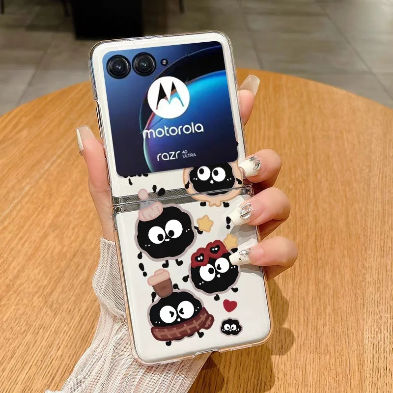 Cute 3D Cartoon Black Briquettes Case for Motorola Razr 40 Ultra 50 60 Ultra Razr Plus 2025 2024 2023 Clear Hard Folding Cover