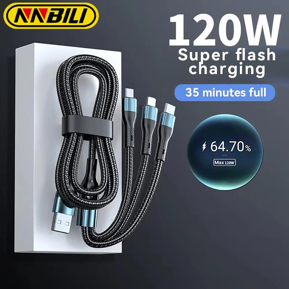 NNBILI 6A 120W 3 in 1 USB Type C Cable Fast Charge Phone Charger Data Cord For iPhone Xiaomi Huawei Quick Charge Micro USB Wire