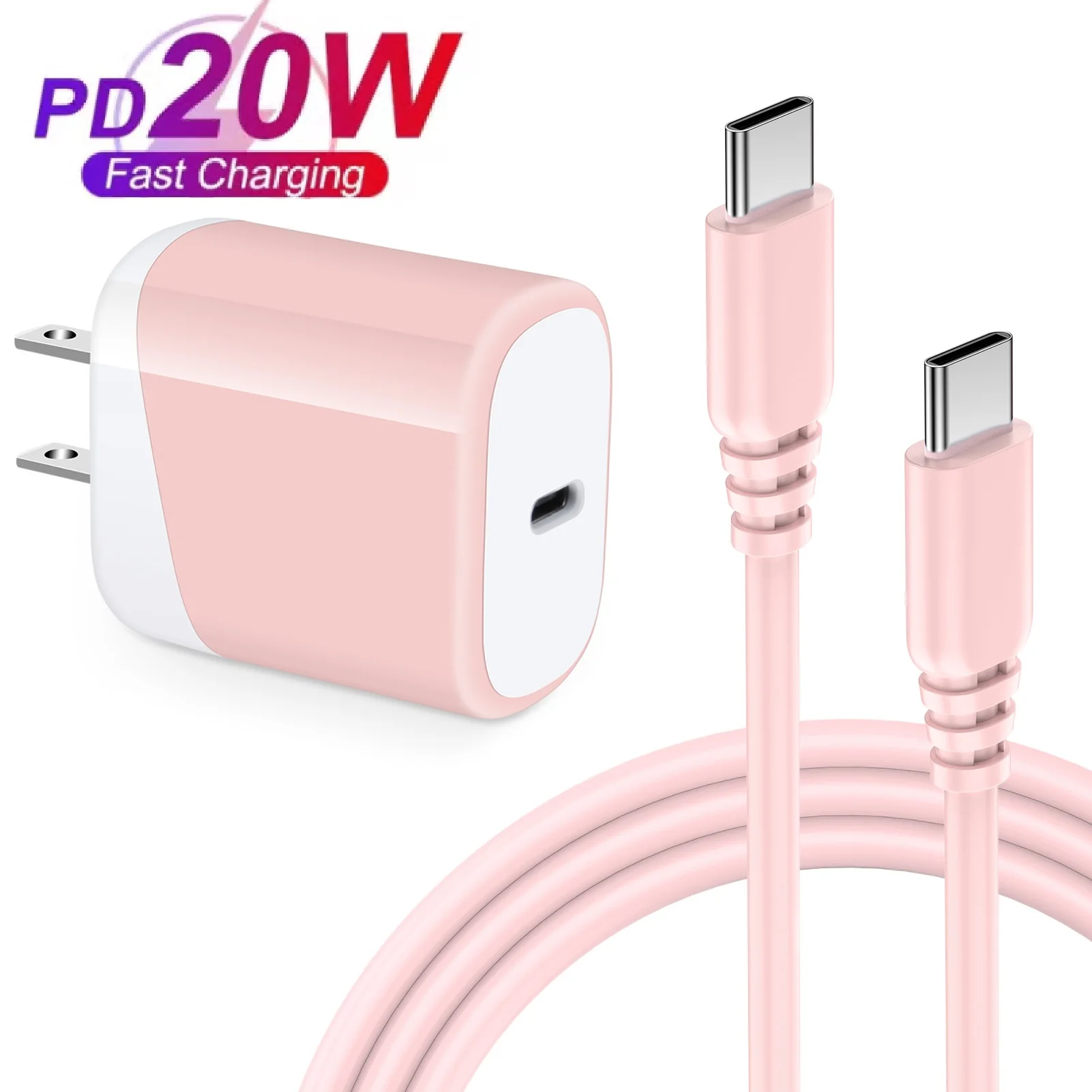 20W PD USB-C Power Adapter Fast Charger For iPhone 15/15pro Type C Wall Quick Charging for Samsung with 1.2M PD Cable