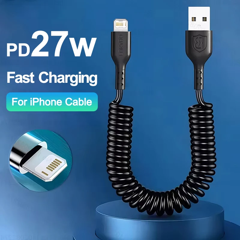27W USB Spring Data Cable Spring Telescopic Fast Charging Wire USB Cables For iPhone 14 13 12 11 Pro Max Car Charger Accessories