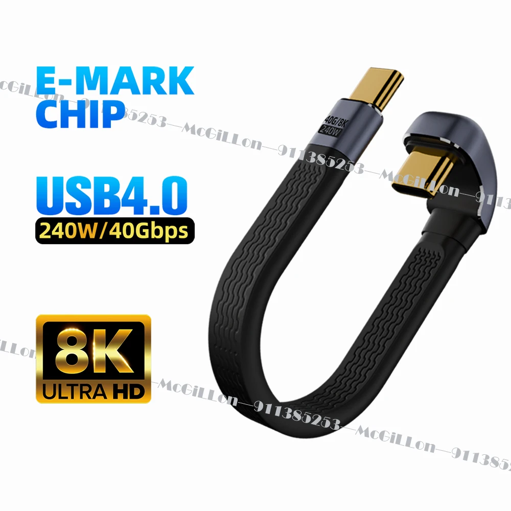U-Shape Elbow USB 4.0 40Gbps Data Cable PD 240W 5A Fast Charging USB C to Type C Cable Thunderbolt 4 8K@60Hz Cable Tipo C Cabel