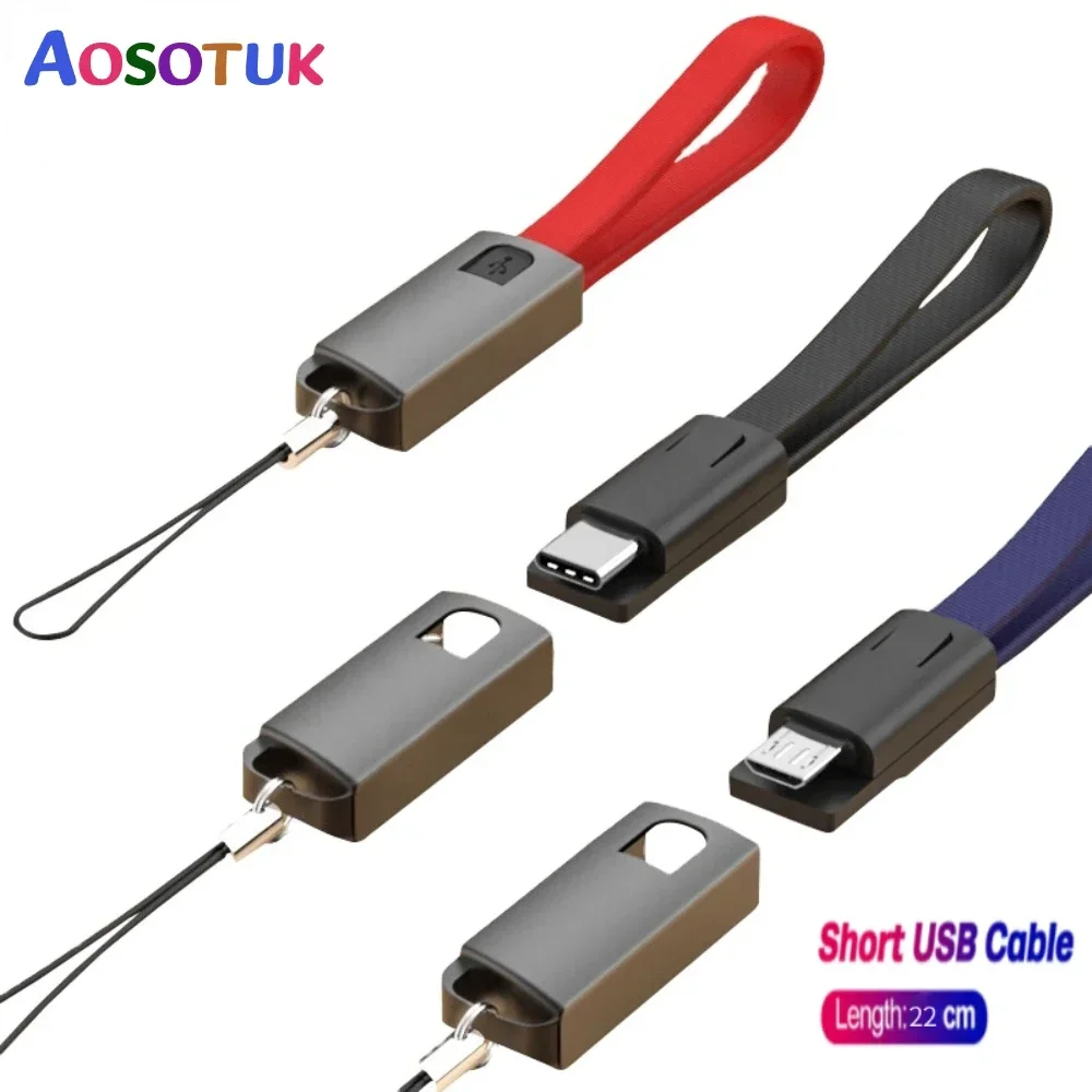 AOSOTUK Mobile Phone Keychain Cable Fast Charger For Type-C Micro USB C Short Cable Key Ring Chain