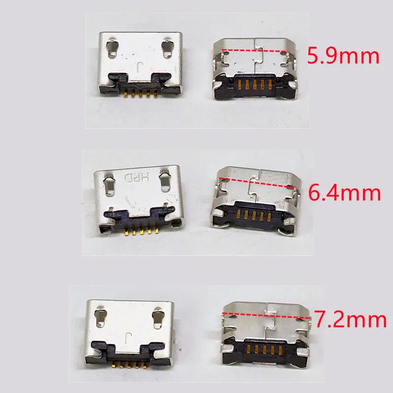 100Pcs Micro USB Flat Mouth 5.9/6.4/7.2mm 5Pin SMT Tail Charging Connector For Smartphone Mobile Phone Charging Socket Port 5P  Read more