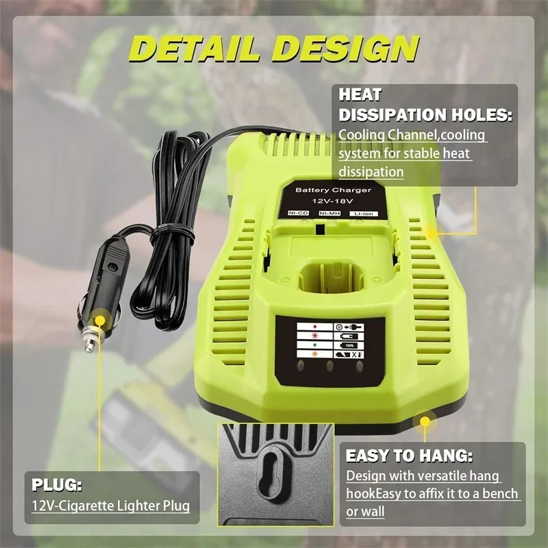 Battery Charger Mini Car Charger For Ryobi 18V Li-ion/NiCad/NiMh Battery with Cigarette Lighter Plug Rapid Charger Replacement