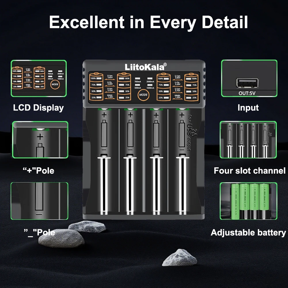LiitoKala Lii-402 Universal Battery Charger for 18650 26650 16340 25500 14500 NiMH AA/AAA Compatible with 1.2V 3.7V 3.2V 3.85V