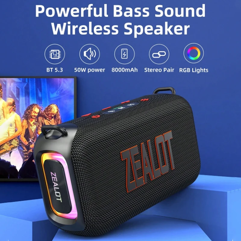ZEALOT S85 50W Wireless Speakers, Outdoor Portable Subwoofer Speaker, IPX 5, Hifi Sound quality, RGB light, Long Battery Life.