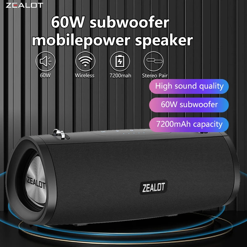 ZEALOT S87 80W Wireless Speakers, Outdoor Portable Subwoofer Speaker , Wireless Speaker, Dual Pairing, 16000mAh Battery.