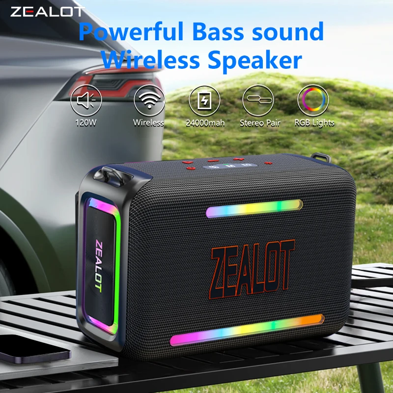 ZEALOT S95 120W Portable Bluetooth Speaker High Volume Waterproof 24000mAh Wireless TWS Subwoofer Suporrt USB/TF/AUX RGB light.  Read more