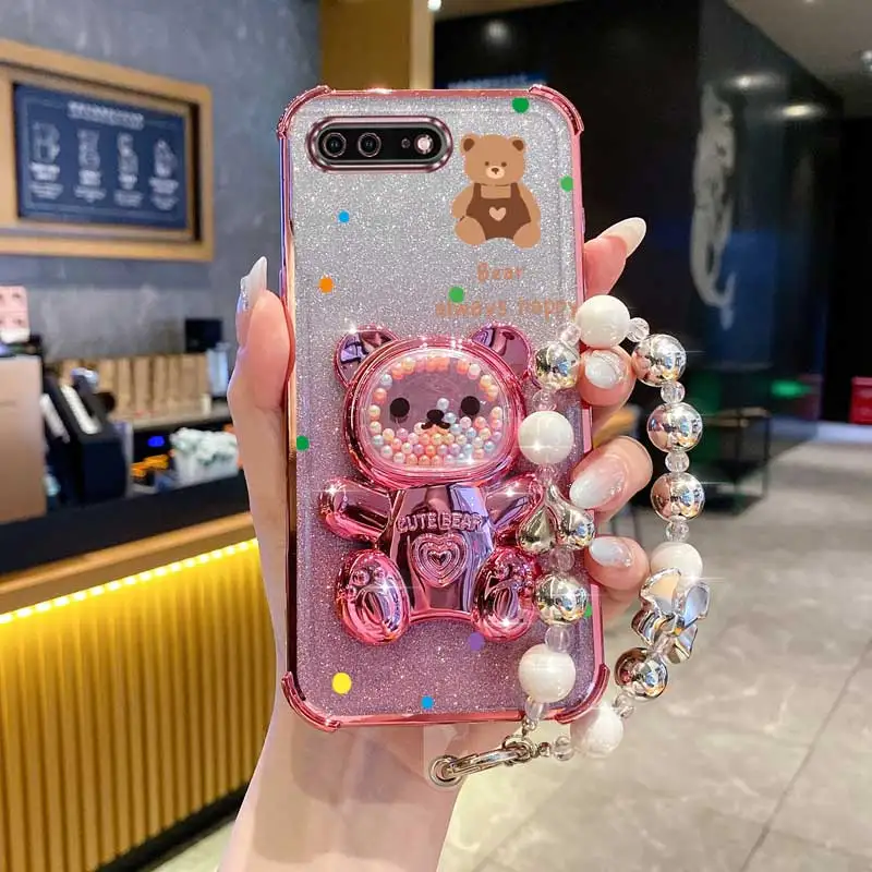 Pearl Strap Lanyard Glitter Strap Bear Phone Holder Case On For iPhone 8 Plus 7 6 6s Plus Se 2020 7plus 8plus Anti-knock Cover  Read more