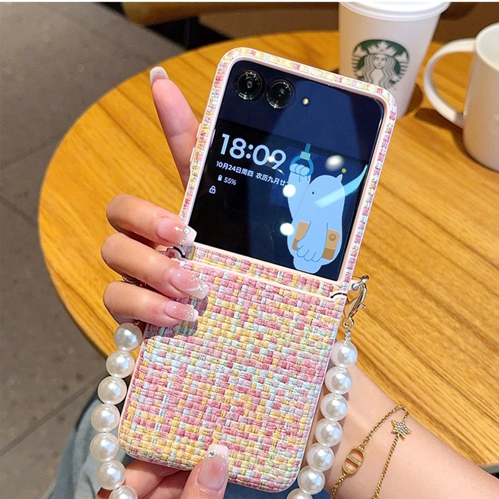 Luxury Candy Color Portable Adjustable Hand Strap Case for Motorola Razr 40 50 60 Ultra 60 Pro Razr Plus 2023 2024 2025 Cover