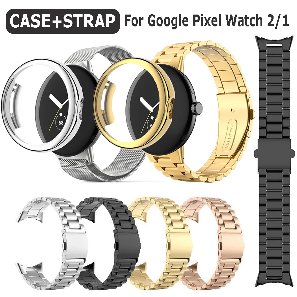 Case+Strap For Google Pixel Watch Stainless Steel Bracelet Screen Protector For Pixel Watch 2 Cover Band Metal Loop Bracelet