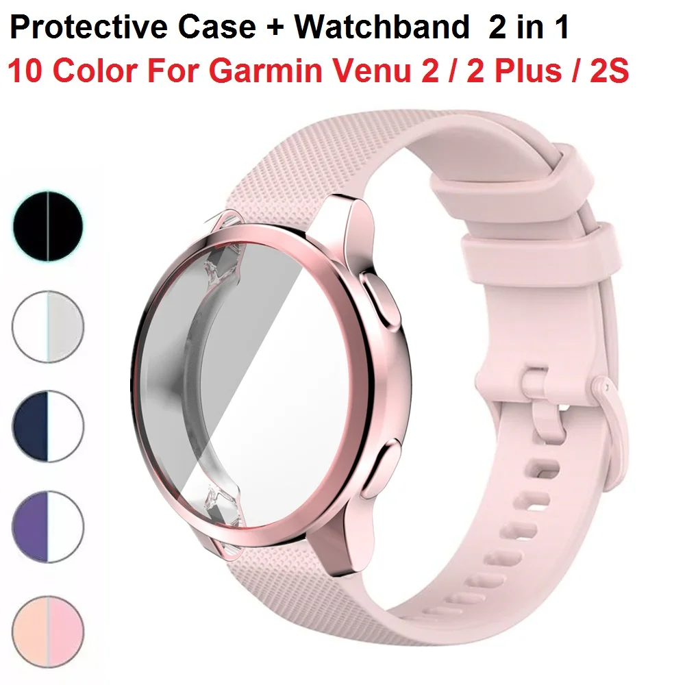 2in1 Case + Strap For Garmin Venu 2S 2 Plus 3 Protector Cover Silicone Watchband For Vivoactive 4 4S Bracelet Bumper Combination