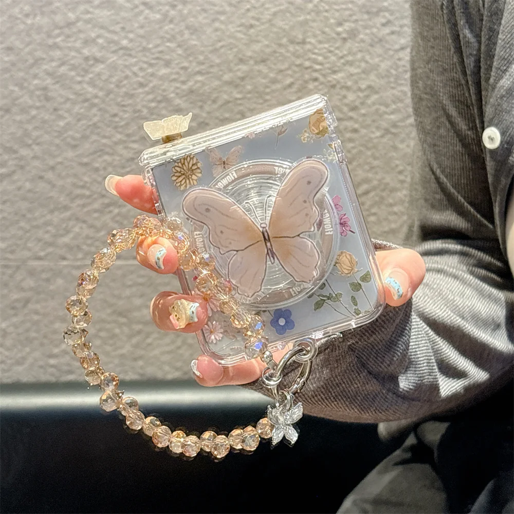 Cute Flower Butterfly with Magsafe Magnetic Holder Stand Phone Case for Samsung Galaxy Z Flip 7 Flip 5 flip 6 7 Cover Luxury Cas