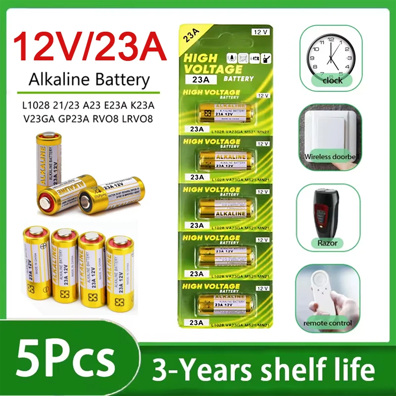 5PCS 12V 23A Battery 23GA A23S E23A EL12 MN21 V23GA GP23A LRV08 For Doorbell Remote Control Electric Toy A23 Alkaline Battery