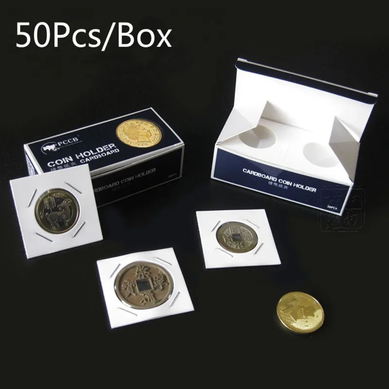 New Hot Square Coin Holders Coin Album Collection Paper Flip Cardboard Case Storage Stamp Holder Cover 50PCS 17.5mm-40mm