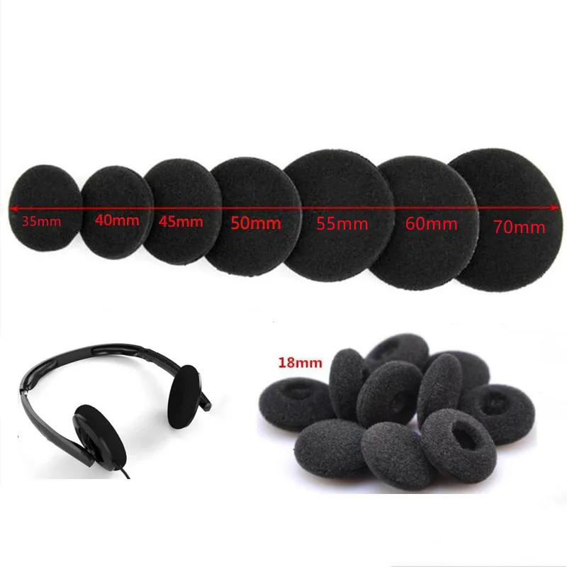 10 Pcs Foam Ear Pads, Headphone Replacement Sponge Covers, Ear Cushions Headset Earmuffs Eartips 18mm 35mm 45mm 50mm 55 60mm 70mm
