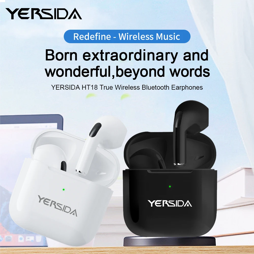 YERSIDA Original HT18 TWS Wireless Bluetooth Earphones HIFI Stereo Sports Headphones with Mic Suitable for xiaomi and iphone