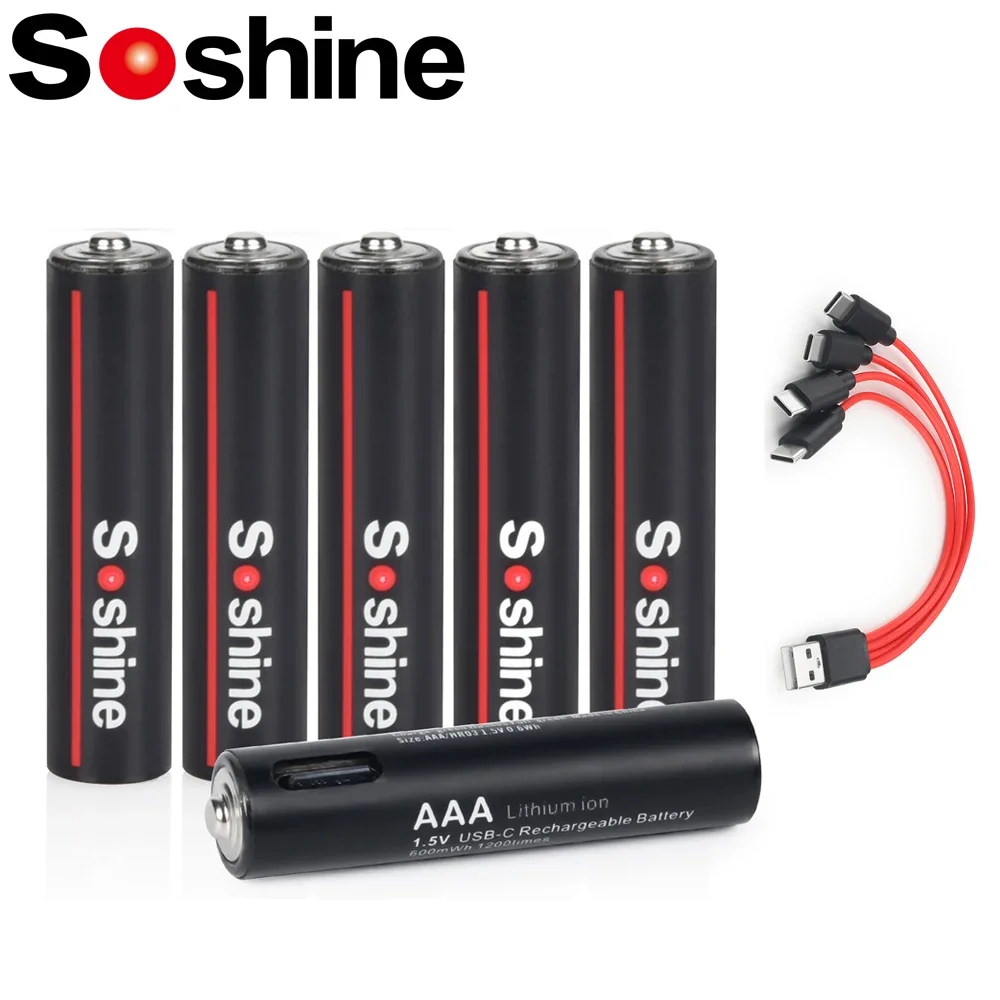 Soshine USB Li-ion AAA Rechargeable Battery Aaa 1.5V 600mWh Lithium Batteries with 4-in-1 USB Cable for Toys Camera Flashlight