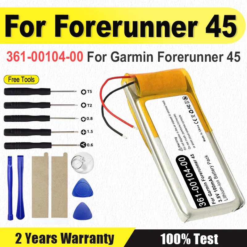Brand-New 361-00104-00 100mAh Smart Watch Battery For Garmin Forerunner 45 High Capacity Batterie + Tools
