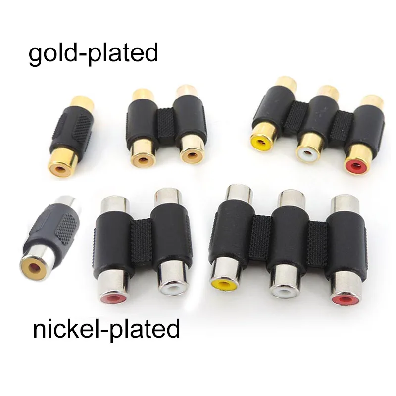 Audio Video 2 Rca 3 rca female to RCA 2rca 3rca female straight Converter AV Coupler Connector gold plated adapter plug Socket  Read more
