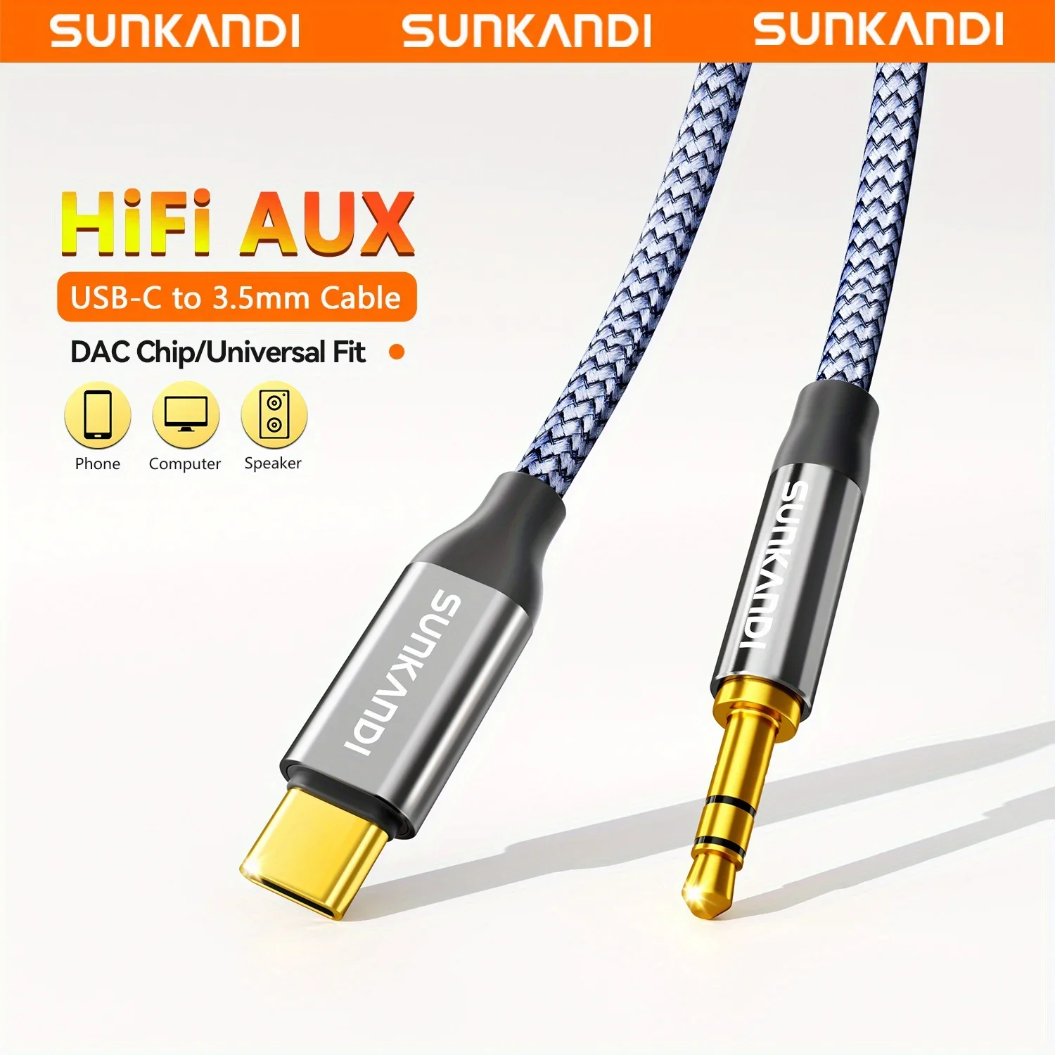 SUNKANDI USB C to 3.5mm Headphone Cable, Type C to 3.5mm Headphone Stereo Audio Cord for iPhone 16 15 , Samsung Galaxy