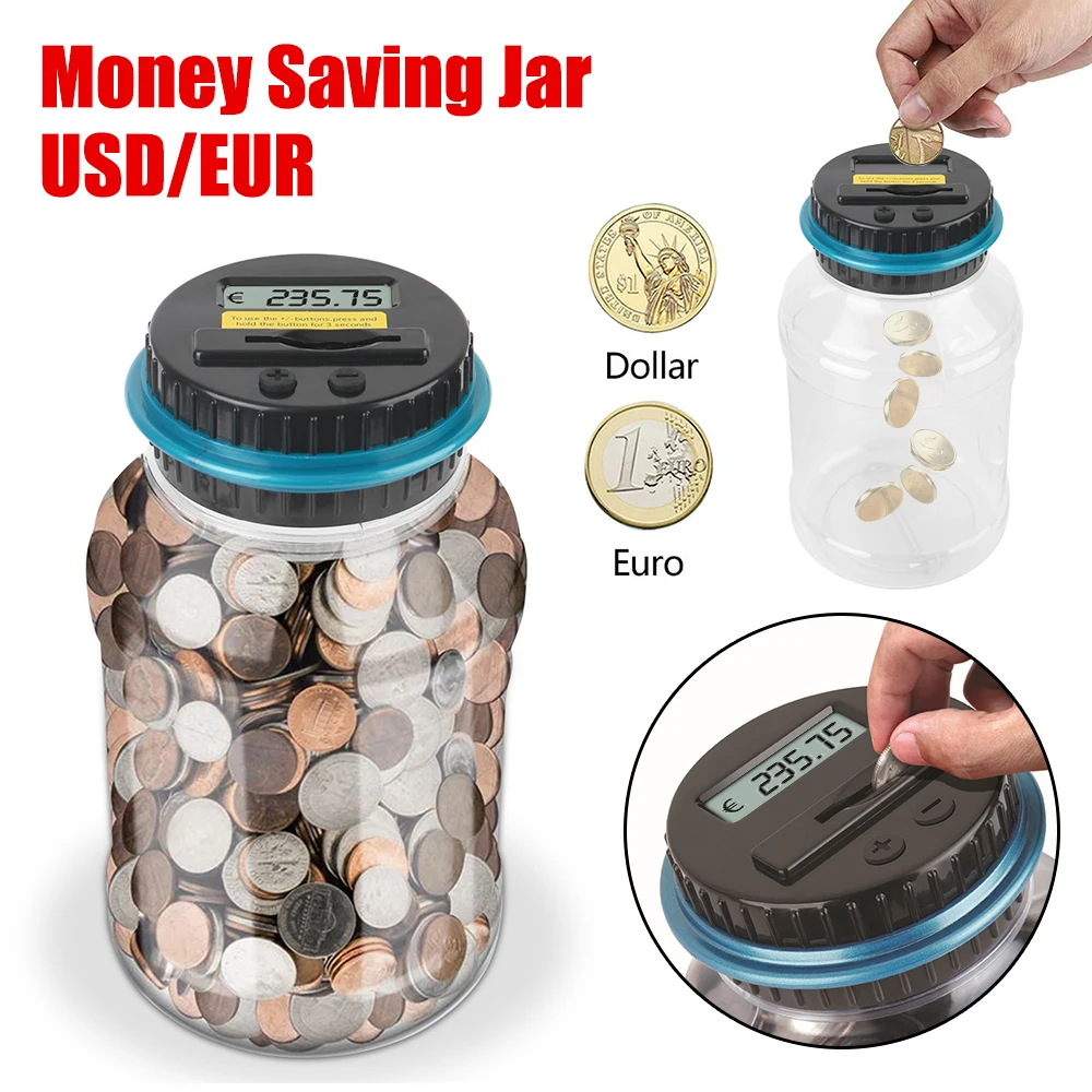 1PC Electronic Piggy Bank Counter Coin Digital LCD Counting Coin Money Saving Box Jar Coins Storage Box For USD EURO Money Gifts