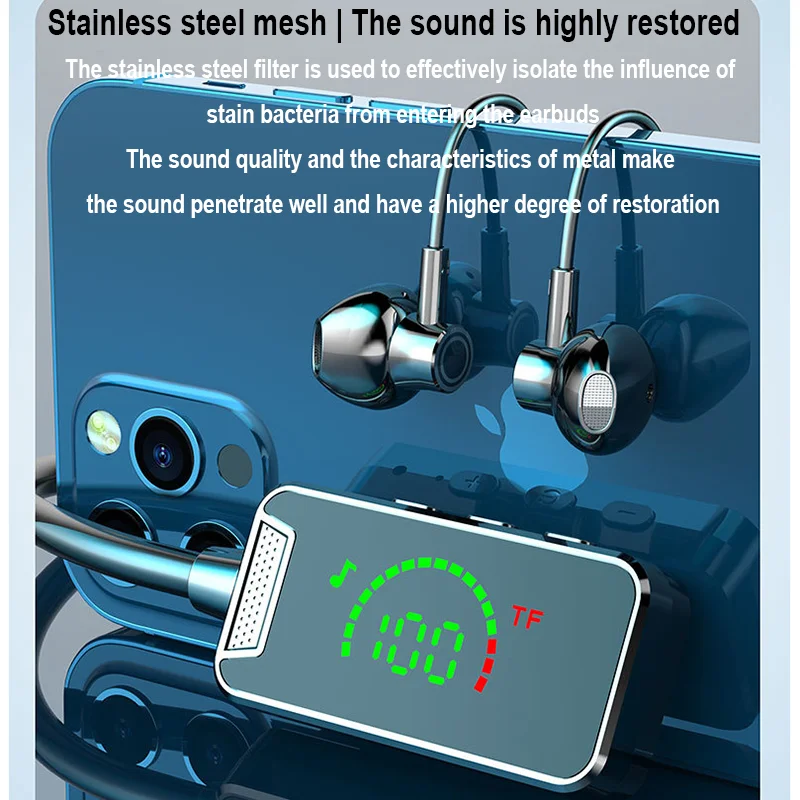 LED Digital Display Neckband Headphones Neck-mounted 3D Stereo Wireless Bluetooth Earphones Waterptoof Mega Bass Sports Headsets