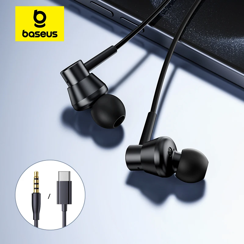 Baseus Encok HZ11/CZ11 in-ear Wired Earphones Powerful Bass Type-C/3.5mm Jack Wired Headphones For Laptop Computer Tablet Phone