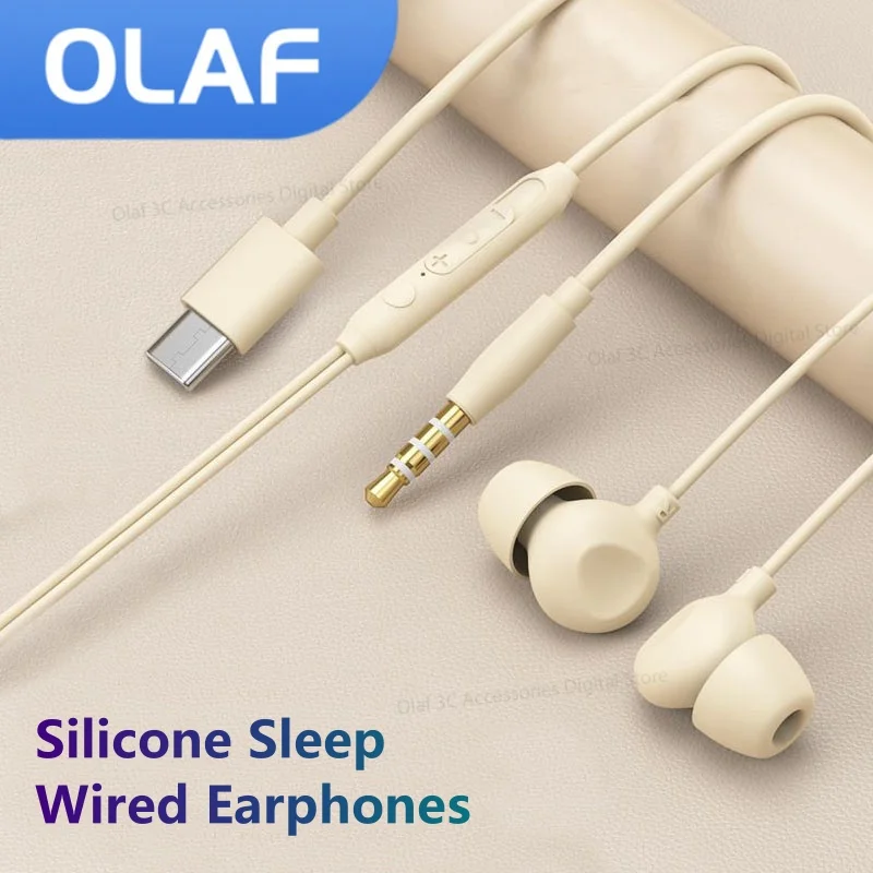 OLAF Type-C/3.5MM Silicone Sleep Wired Earphones In-ear Handsfree With Cable Headphones With Mic Earbuds In-line Control Headset