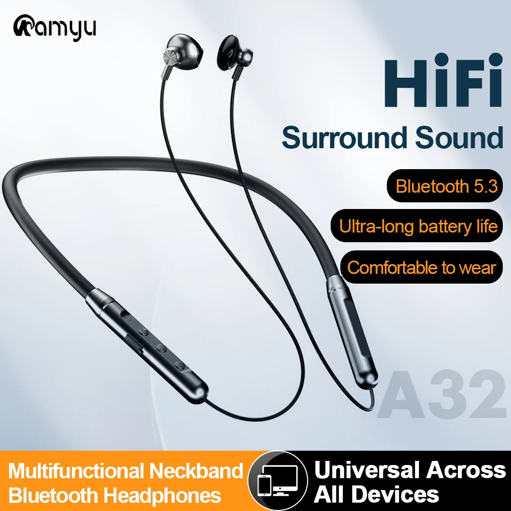 KAMYU A32 Wireless Earphone Neckband Sport Running In Ear Headphones Bluetooth 5.3 Chip HiFi Stereo Headset For Android iOS