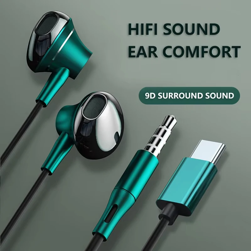 NEW 9D Surround Sound Earphones Metal Type C&3.5mm Headset In-ear Gamer Headphones Wired Control Earbuds for Samsung With HD Mic